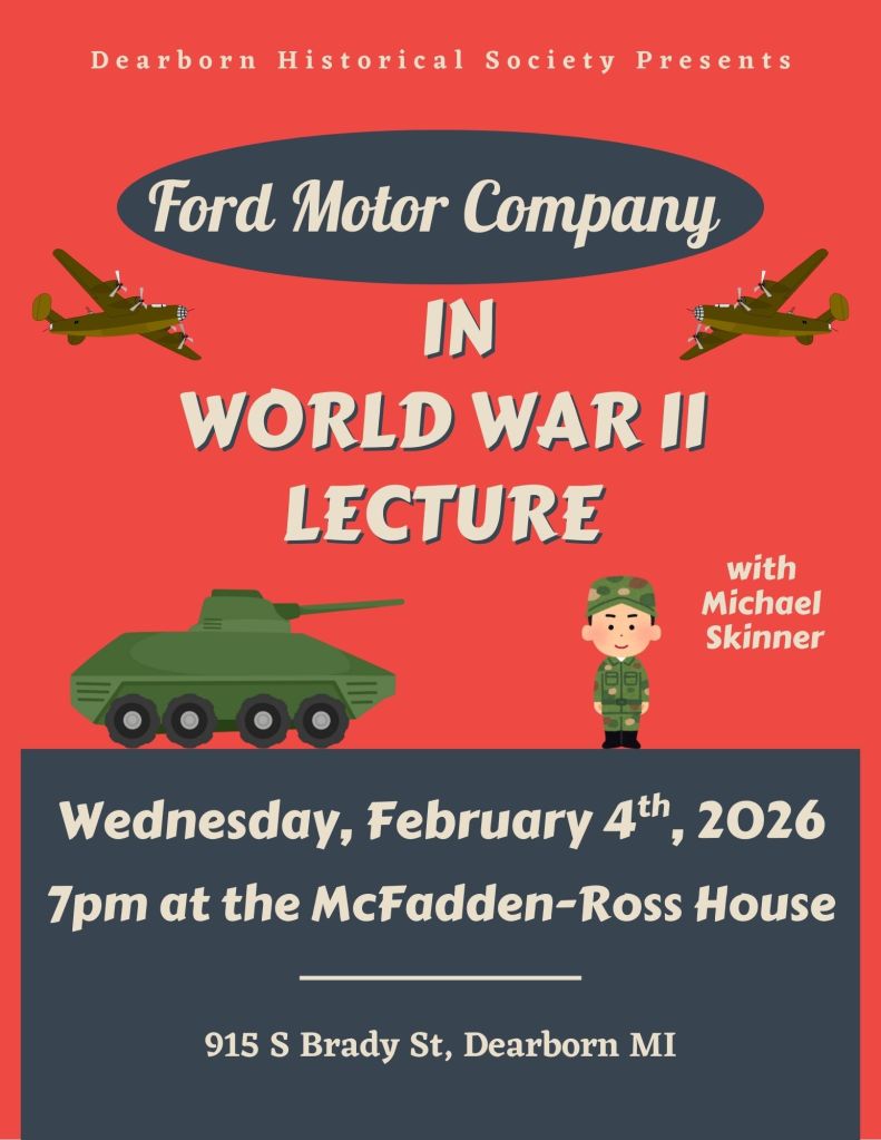 Curious about topics within the history of Dearborn? Visit the McFadden-Ross House for lectures on the first Wednesday of every month at 7pm. Discover more about Henry Dearborn, Ford Aviation, and more.