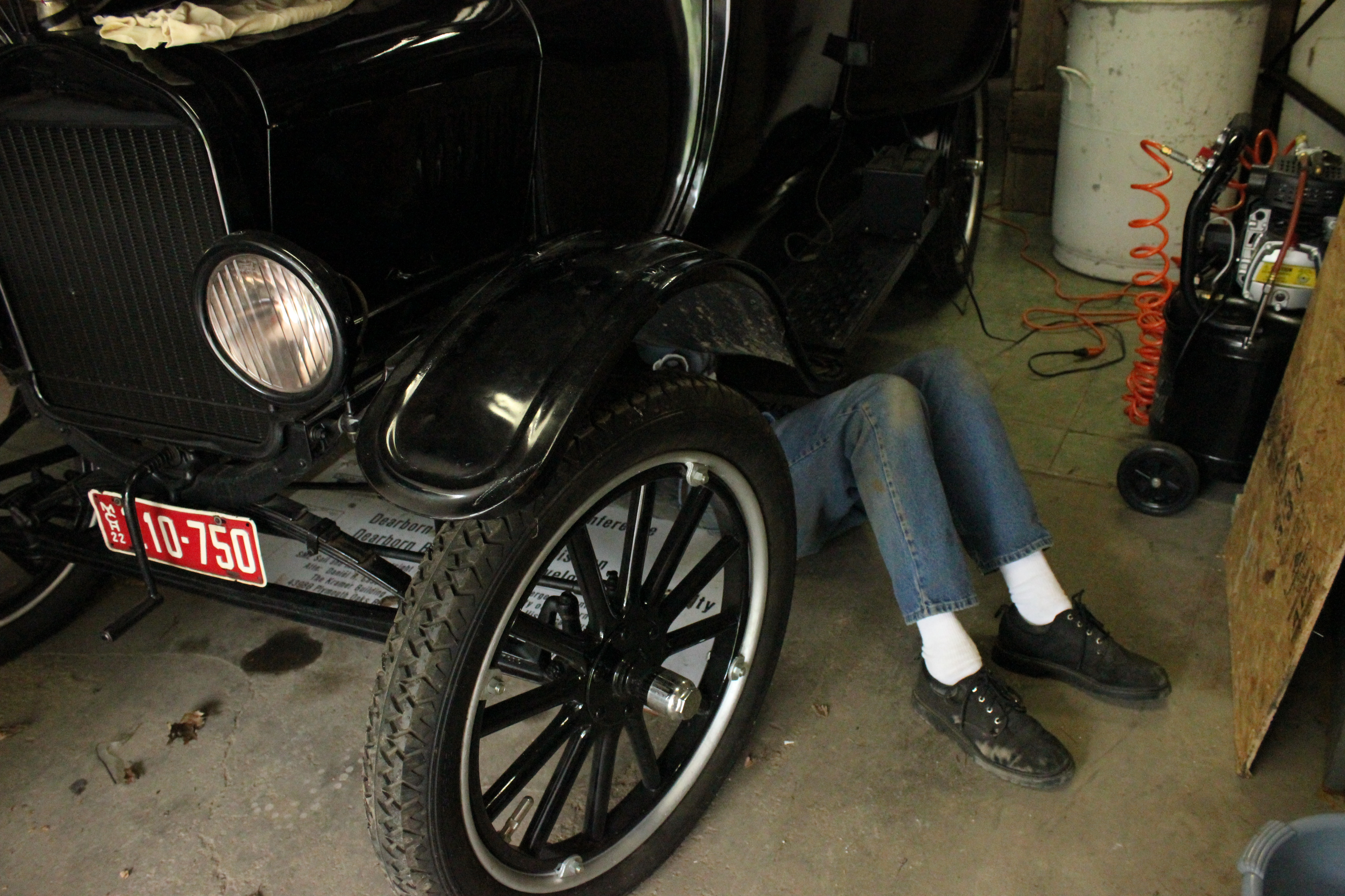 To make this happen means putting in some extra work. Keeping the museum’s Model Ts safe, means not driving them around needlessly in our unpredictable Michigan weather. But as anyone with a car can tell you, letting the car sit for too long can cause all sorts of problems. That’s where our intrepid volunteer Tom Saroglia comes in.