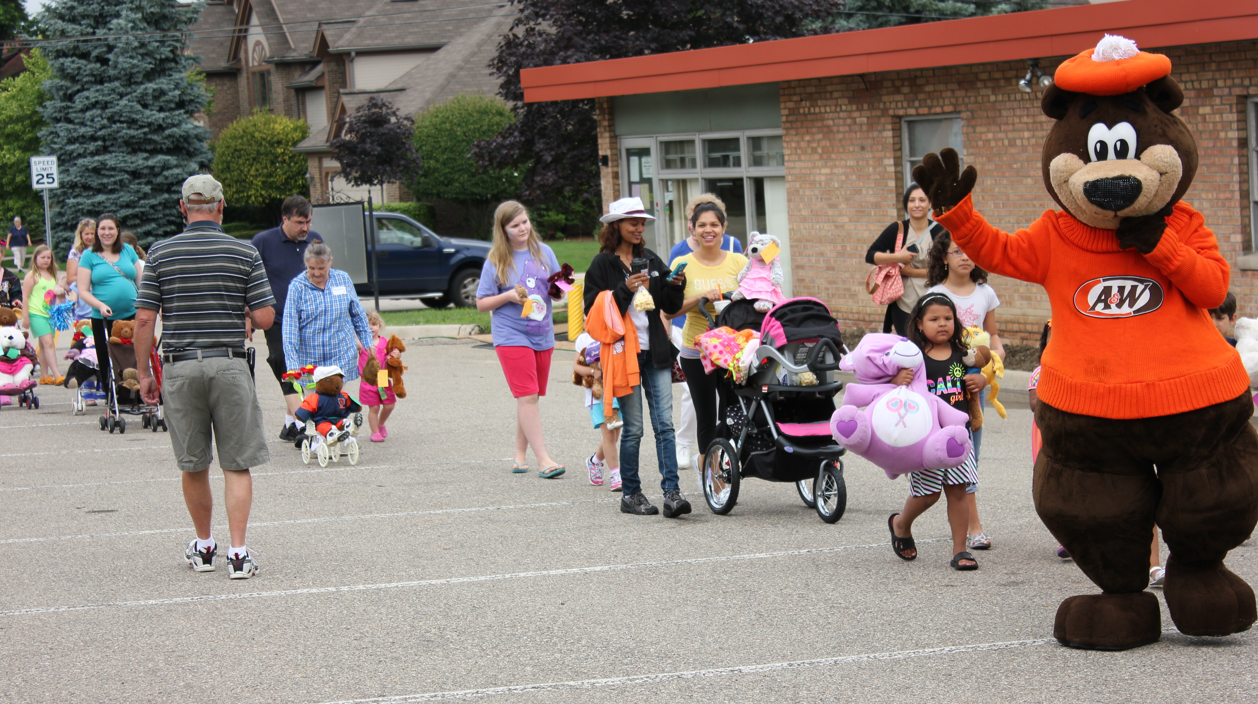 A&W helped sponsor the Teddy Bear Picnic, providing free root beer, and temporary tattoos for families and volunteers. Their contribution really can’t be downplayed. A&W even got Rooty to show up and lead the Teddy Bear Parade!