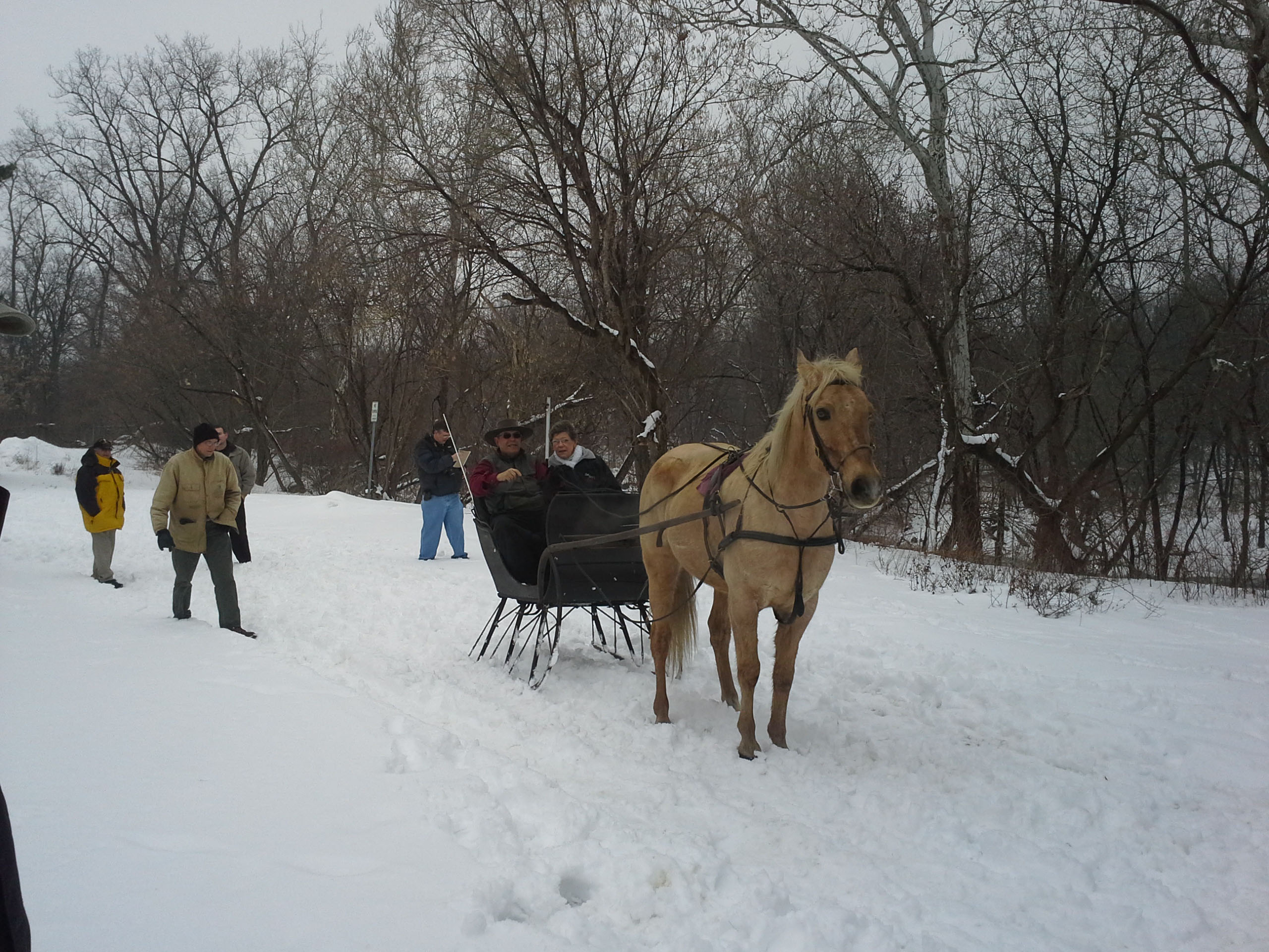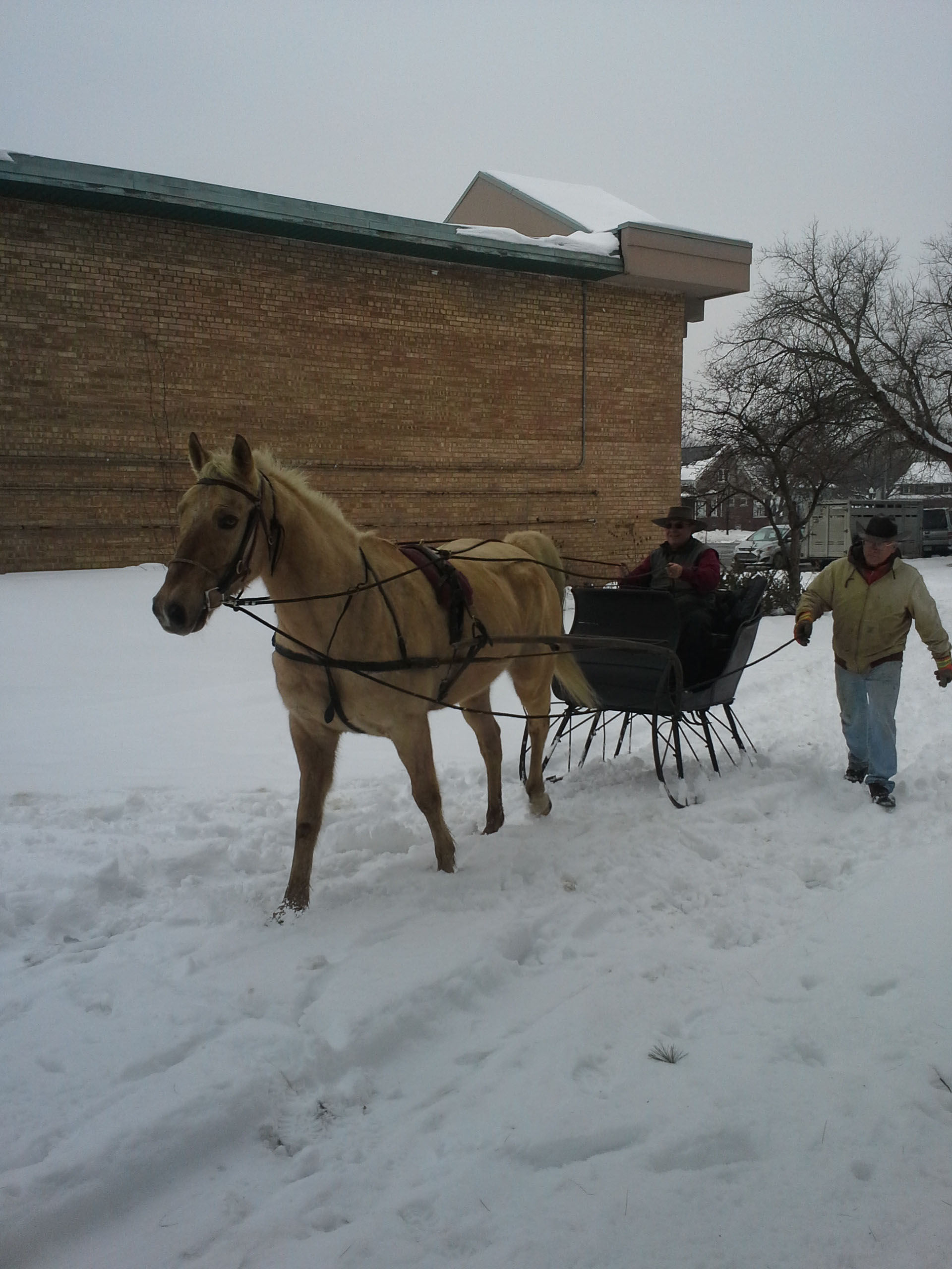 He has tackled a variety of projects since starting with us. Starting with cleaning, conditioning and organizing work harnesses and horse collars, he has also performed cleaning and repair work on one of our horse-drawn sleighs and our surrey. A few weeks ago he even showed up with his arm in a sling, ready to help out after spraining his shoulder. Recently, he showed up to the museum with his horse and hooked up the sleigh he had performed restoration work on. He then went for a ride around the museum grounds.