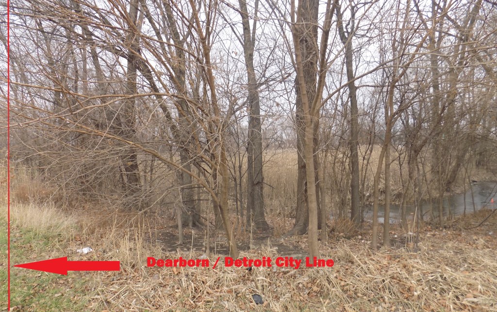 North of Baby Creek, most of Dearborn’s eastern border was established with a 1916 annexation by Detroit of land designed to ensure several Springwells Township rural school districts were fully in the City of Detroit. The line follows the western boundary of old Private Claim 40, an old French Style ribbon farm lot. At a point 163 ft south of Michigan Avenue’s center line, Dearborn’s border parallels Michigan Avenue until it reaches the west line of old Springwells Township section 9 (also known as Wyoming Street). From there it heads directly northward.