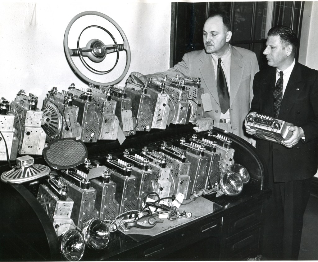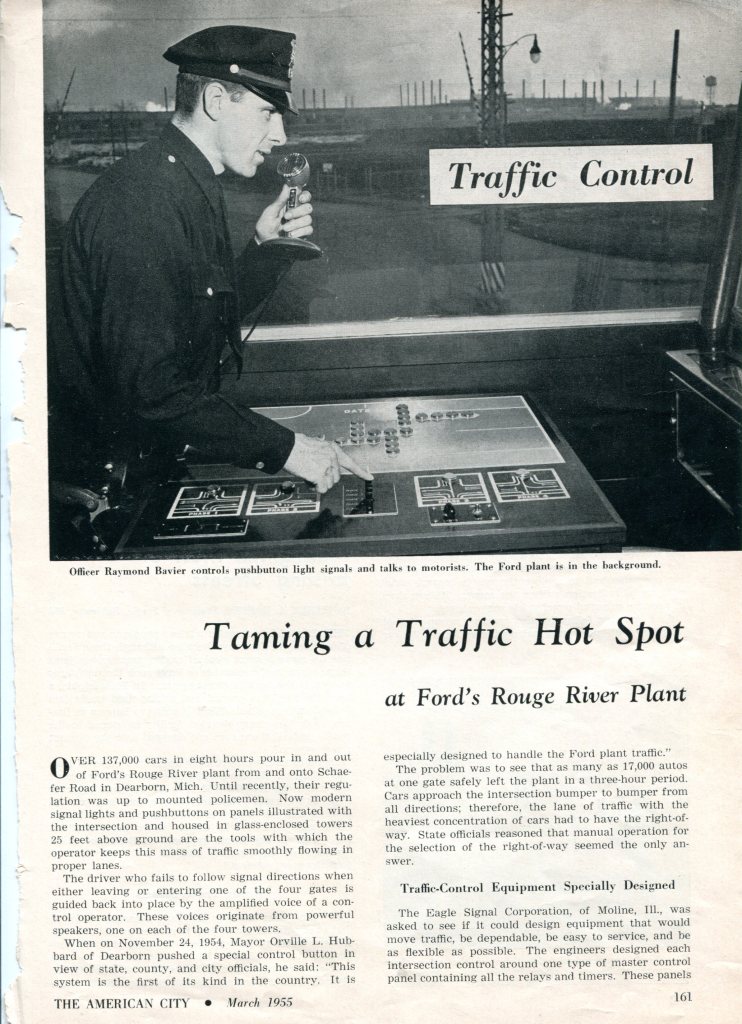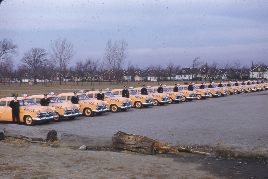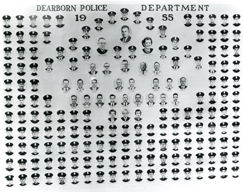 The Dearborn Police force pictured in 1955.Loot seized from juvenile car strippers – June 6th 1950Police traffic tower opposite the Ford Rouge Plant pictured in 1954Article on Dearborn Police Traffic Control TowersPublic Safety Director Marguerite Johnson and police officers – ca, 1950s