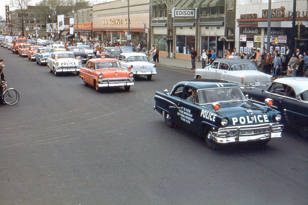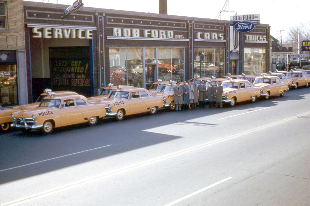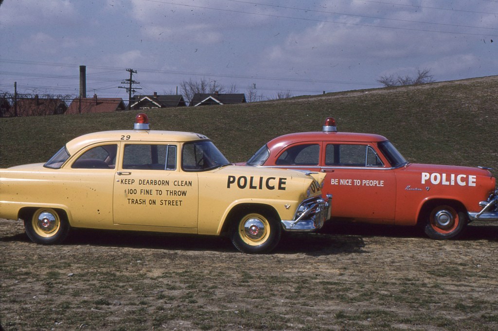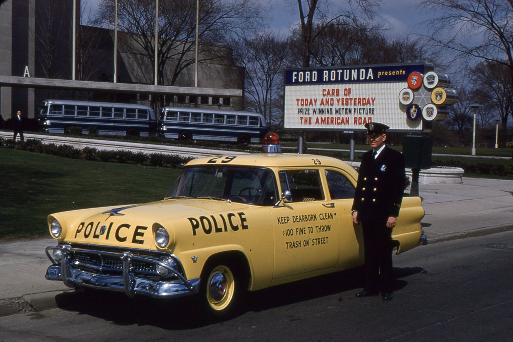 Dearborn Police dog pictured in March 1955Dearborn Police Dogs in May 1955Magazine cover profiling the Dearborn Police canine division.Dearborn Police Cars at Bob Ford Dealership on Michigan Ave – November 1952Dearborn Police Cars at Hemlock Park – November 1952December 1953Dearborn Police motorcycle unit pictured in July 1954Dearborn Police Car at Ford Rotunda – April 1955Dearborn Police Cars at Hemlock Park – April 1955 Michigan Avenue – May 5th 1956Outer Drive – May 5th 1956Police dragging for body of Gertrude Gatt – February 1957New Dearborn Police Headquarters near Michigan and Greenfield that was completed in 19611969 Ford with C Series CaboverDemonstrating use of new police and fire phone – June 1969