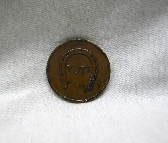 This employee token, c. 1930s, is pressed aluminium with a stylized capital “F” on obverse, “Clyde M. Ford, Dearborn, MI, No 17”.