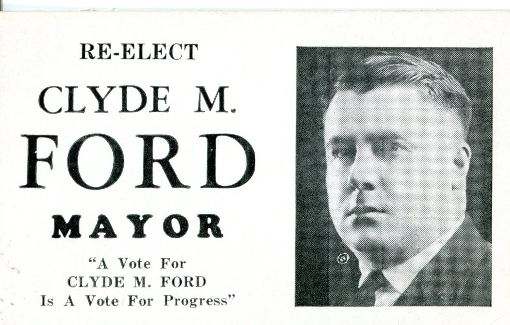 From 1927 to 1929, Clyde M. Ford served as the first mayor of the old City of Dearborn before its consolidation with Fordson in 1929. He then defeated Floyd Yinger, mayor of Fordson, in the mayoral race to become the first mayor of the new consolidated City of Dearborn. Clyde was a cousin of Henry Ford, and before becoming mayor, Clyde had a career as a car and tractor salesman at his father’s Ford Dealership. The business, which he would go on to own in 1920, was West Dearborn’s first Ford dealership. This did not help him in 1935 as Ford lost reelection by only placing third in the mayoral primary. Ford’s loss was the only time in Dearborn History that an incumbent mayor lost reelection. The campaign of his chief opponent, John Carey, singled out Ford as personally responsible for the existence of alleged disorderly behavior and gambling houses in the eastern and southern parts of the city. Furthermore, Ford Motor Company throwing its resources behind John Carey helps explain Ford’s loss. After losing the election as mayor, Clyde also served as President of the City Council, City controller, and on the Board of Assessors.