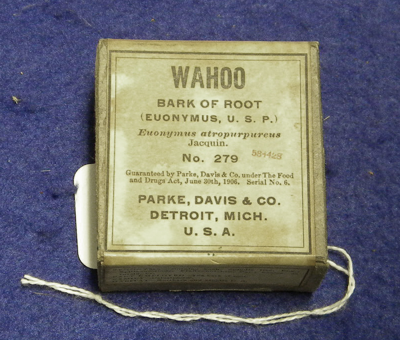 Wahoo Bark of Root No. 279, Parke Davis & Co. Used to treat constipation and liver derangement. c. 1900s