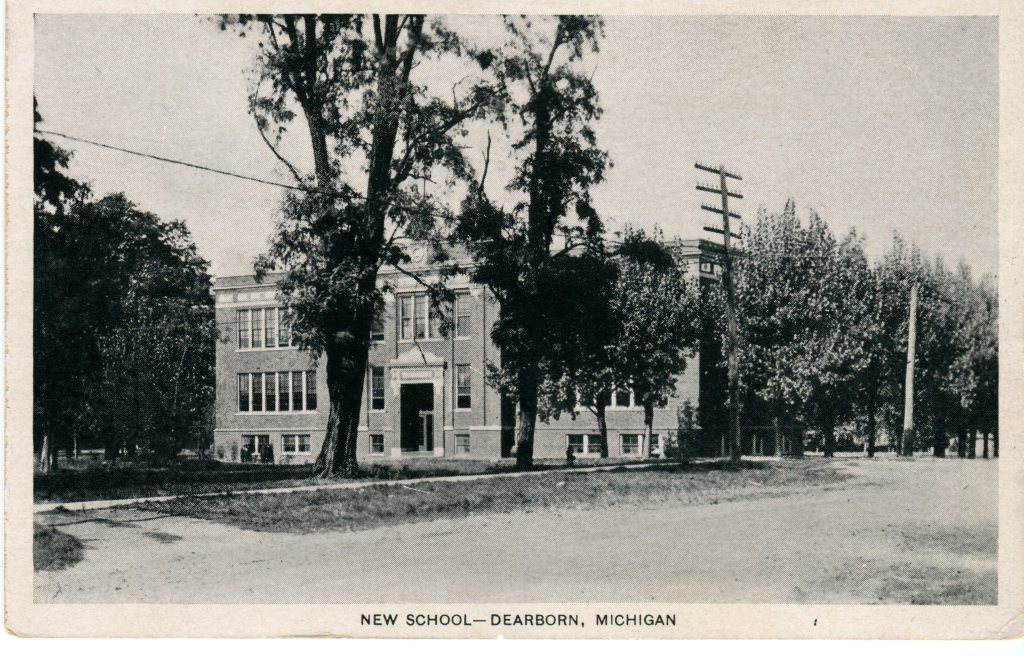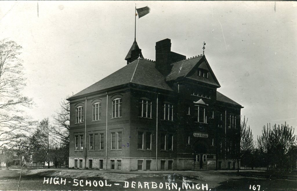 Postcards of the first Dearborn High School building which was constructed in 1893 and remained open until 1925. The building often known as Dearborn Public School or Dearborn Union School was located in the middle of the block between Mason, Monroe, Garrison, and Morley.