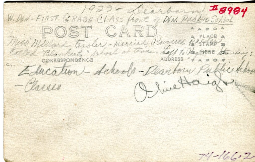These postcards show classes at Henry Ford School which opened in the 1910s near the modern site of Ford World Headquarters.